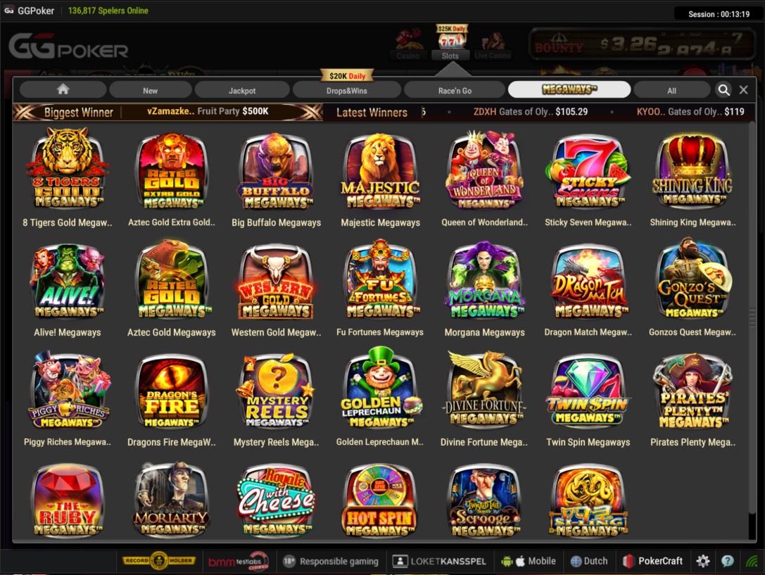 Vanaf vandaag kan je niet alleen online pokeren op GGPoker, maar zijn er ook online casinospellen beschikbaar voor de Nederlandse spelers. vandaag verscheen deze optie in de lobby.