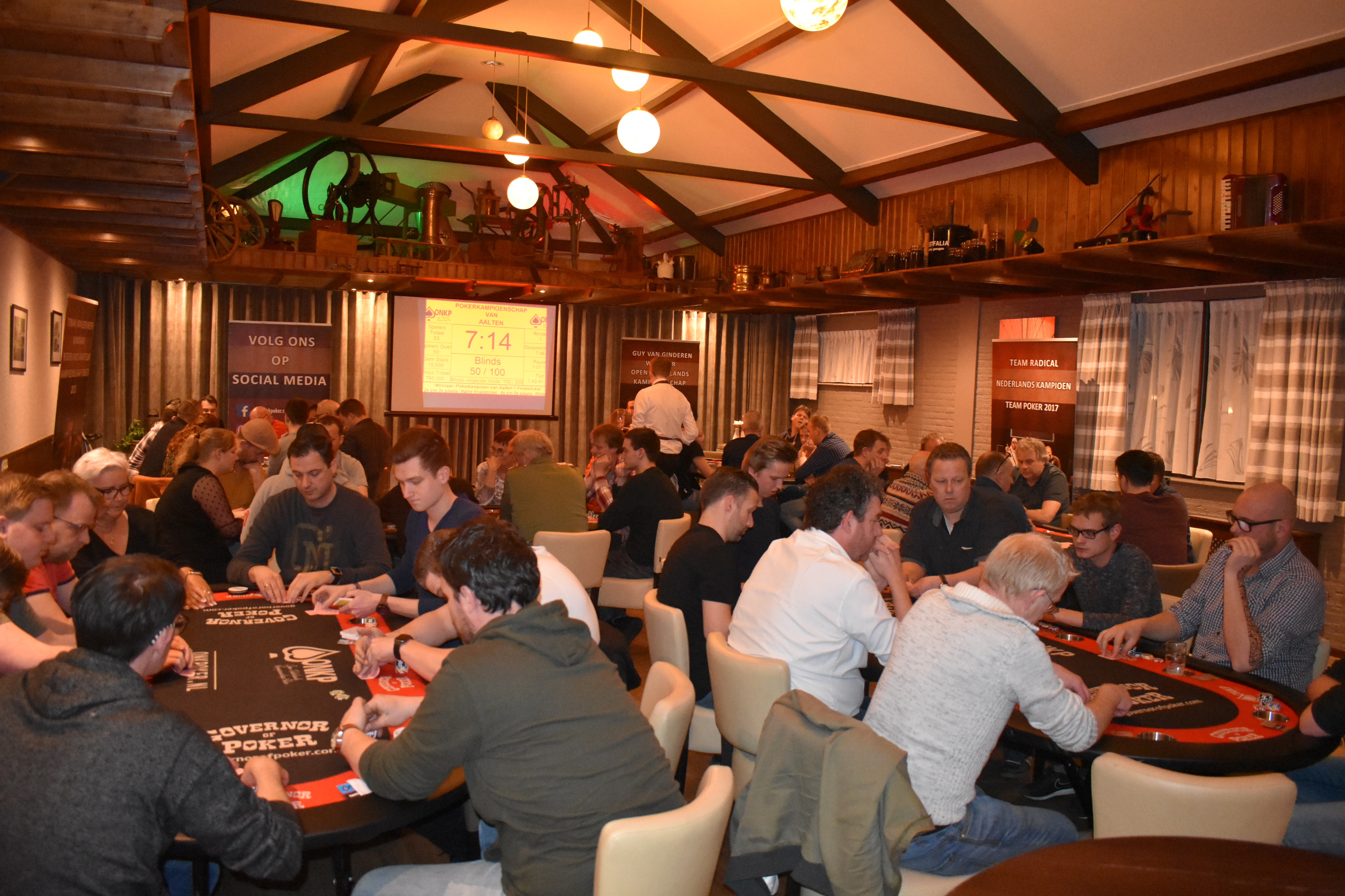 Gemiddeld doen er zo'n 70 spelers mee aan onze toernooien. De horeca-uitbater kan dan ook een mooie omzet draaien, ook aangezien de spelers graag een hapje en drankje nemen tijdens het pokeren.