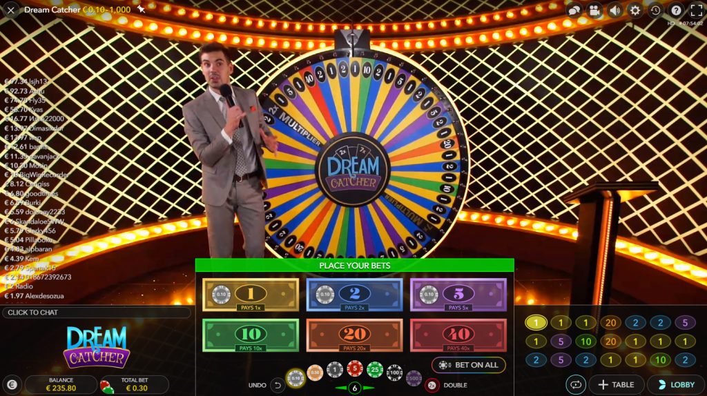 • Dreamcatcher is te spelen vanaf minimaal 10 eurocent en de maximale inzet is afhankelijk van het live casino waar je speelt.