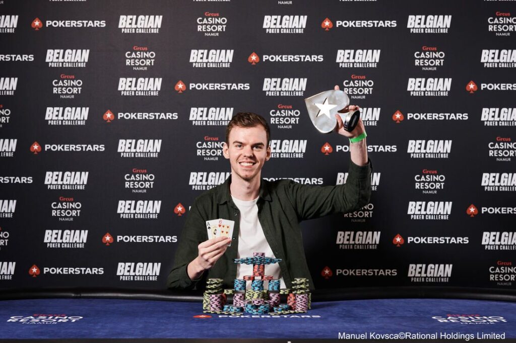 De Nederlandse pokerspeler Michel Molenaar na zijn overwinning van de BPC €550 Freeze Out Championship in 2023