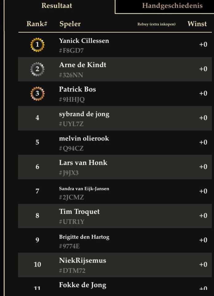 Uitslagen van pokertoernooien in Harbourlights