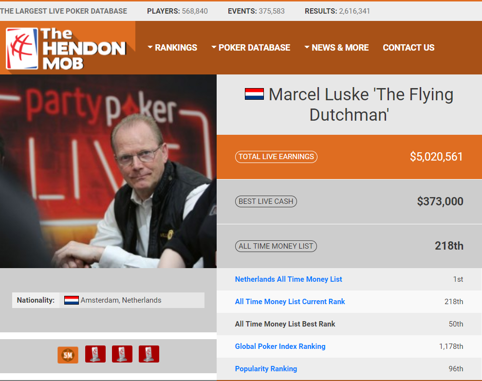 Marcel Luske The Flying Dutchman heeft als eerste Nederlander 5 miljoen aan prijzengeld bij elkaar gepokerd. Hij behaalde dit legendarische bedrag tijdens de partypoker Carribbean Poker Party. In het $5.300 main-event eindigde hij op een 29e plaats wat goed was voor $25.000. Daarmee passeerde hij de vijf miljoen aan live earnings.