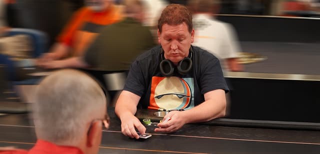 Sebastiaan in actie als speler/deler, tijdens het Pokerkampioenschap van Coevorden (16-03-2025)