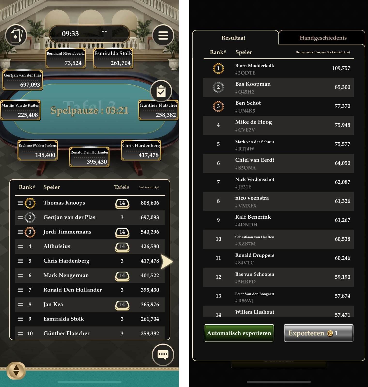 - Sommige spelers zagen nog een lege tafel waar alleen zij aan zaten, terwijl het toernooi al 10 minuten bezig was (dit probleem werd opgelost door de app opnieuw op te starten).