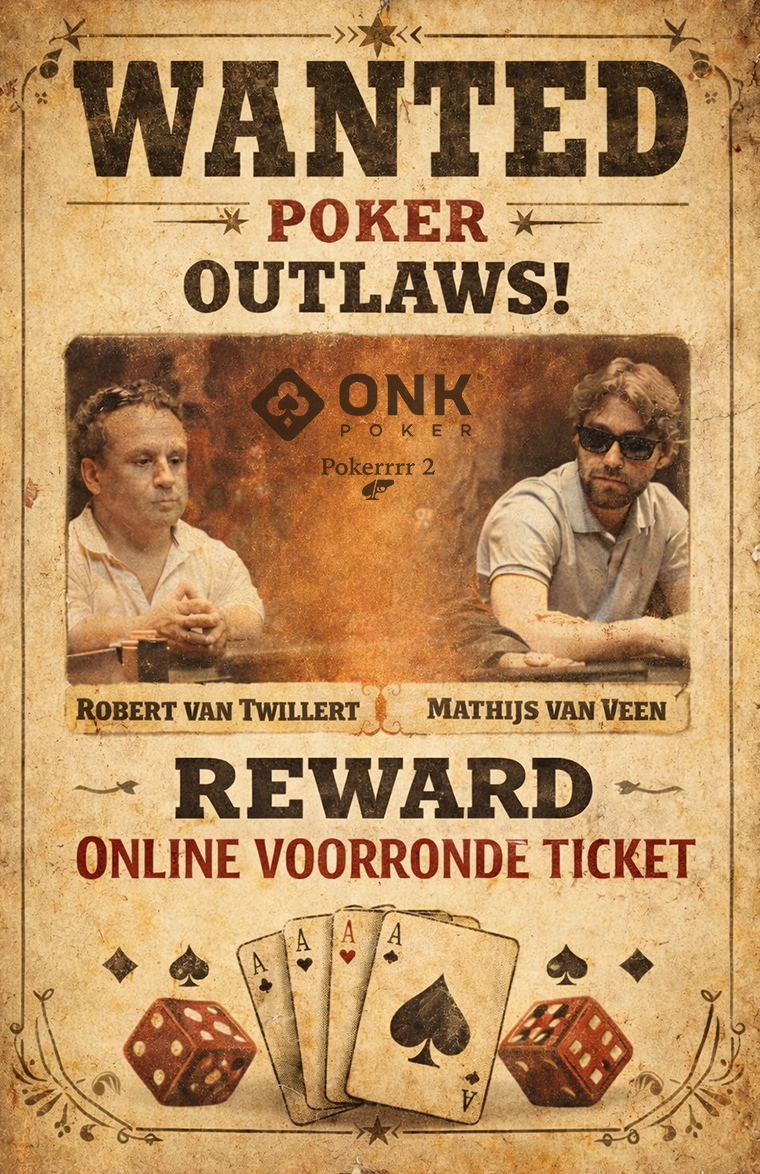 Tijdens de online voorronde van Deurne, op woensdag 28 januari, staat er een bounty op de hoofden van de teamleden van Team ONK Poker. Robert en Mathijs zullen deelnemen aan de online voorronde, en op het moment dat jij ze uitschakelt win je een gratis online voorronde ticket!