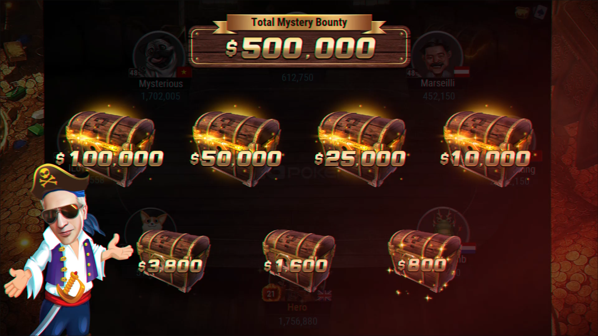 GGPoker heeft dit populaire concept van de Mystery Bounty vertaald naar een nieuwe online toernooi variant. Je begint een Mystery Bounty toernooi op GGPoker als een gewoon toernooi in de 'Initial Phase'. Houd je het lang genoeg vol, dan beland je in de 'Final Phase' en vanaf dat moment kun je Mystery Bounties winnen door spelers uit te schakelen. Zoals je van GGPoker gewend bent hebben ze ook van deze variant een visueel spektakel gemaakt met een 'Pirates of the Caribbean' achtige uitstraling met Elky als een soort Captain Jack Sparrow. Dit voegt extra veel beleving toe aan de Mystery Bounty. Wat zou er in de schatkist zitten?!