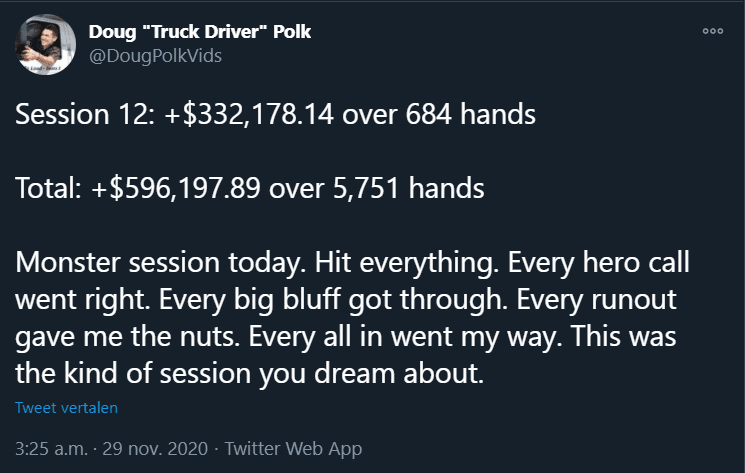 | 12 | 29-11-2020 | 684 | +$332,178.14 (Doug Polk) | +$596,197.89 (Doug Polk) |