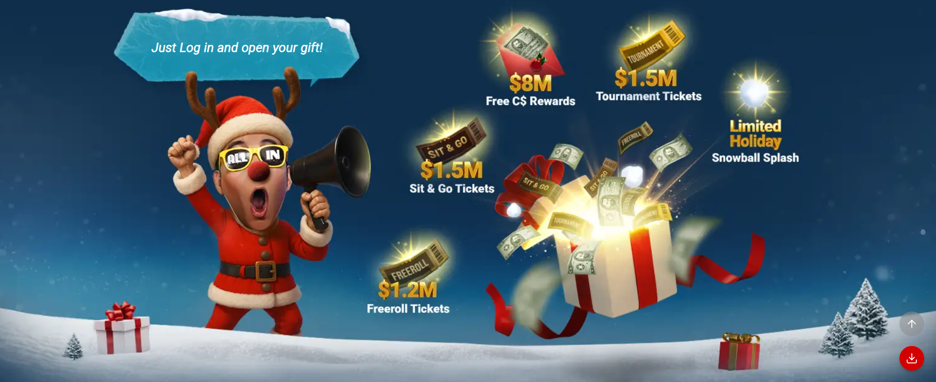 12 dagen lang, $12 miljoen aan kerstcadeautjes. GGPoker viert de feestdagen met 12 dagen vol speciale cadeaus. Elke speler ontvangt een feestelijke verrassing door in te loggen tussen 15 en 26 december en zijn of haar kerstcadeaupakket te openen.