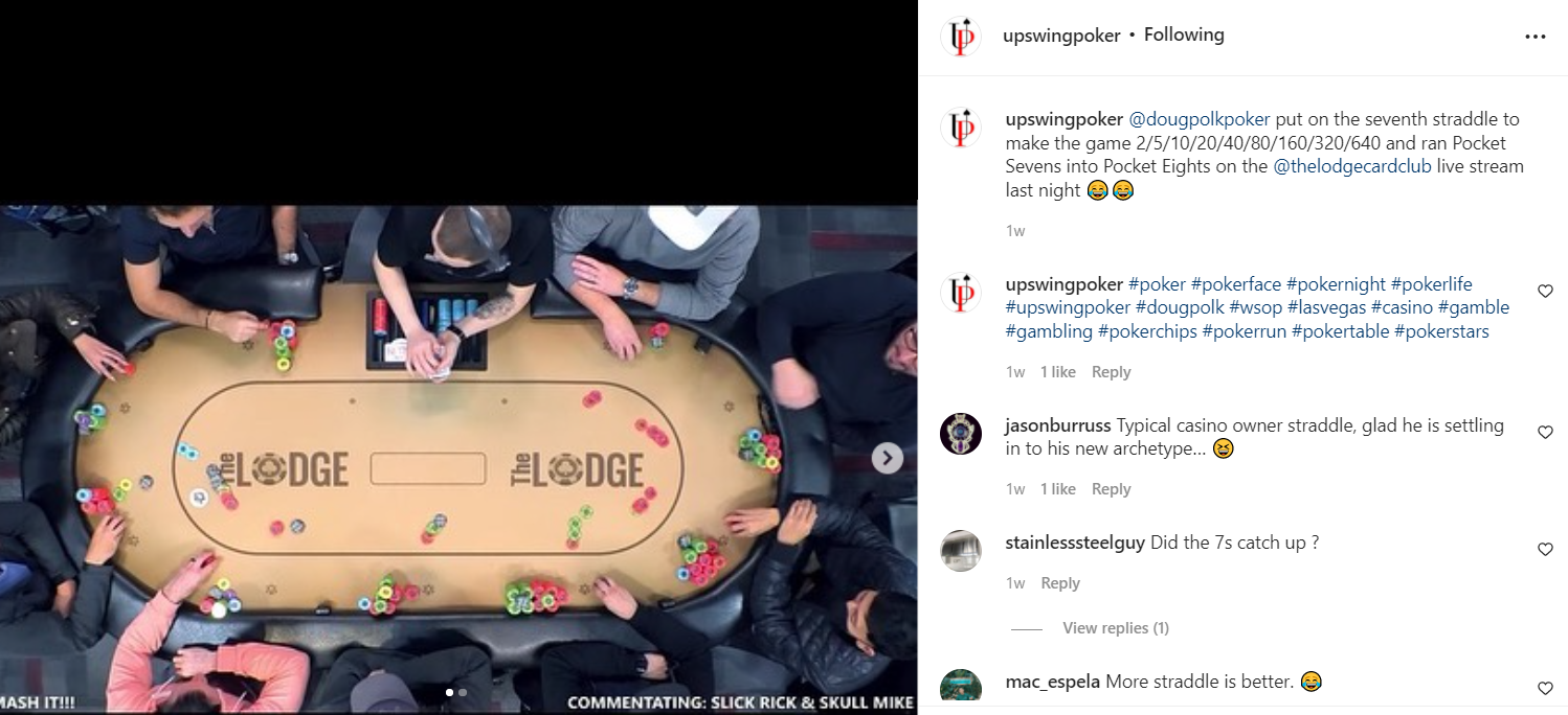 Bizarre actie op de livestreams is gegarandeerd, was er op de livestream van The Lodge aan de 2/5 een hand die uiteindelijk de tafel veranderde in 2/5/10/20/40/80/160/320/640, je ziet het goed, de hele tafel zette een straddle. De laatste straddle werd geplaatst door Doug Polk, die uiteindelijk de hand verloor met 77 tegen 88.
