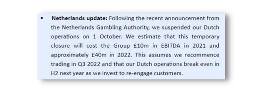 Verder geeft Flutter in het statement aan dat ze door de legalisatie in Nederland ongeveer £50 miljoen pond (ongeveer €58 miljoen euro) misloopt.