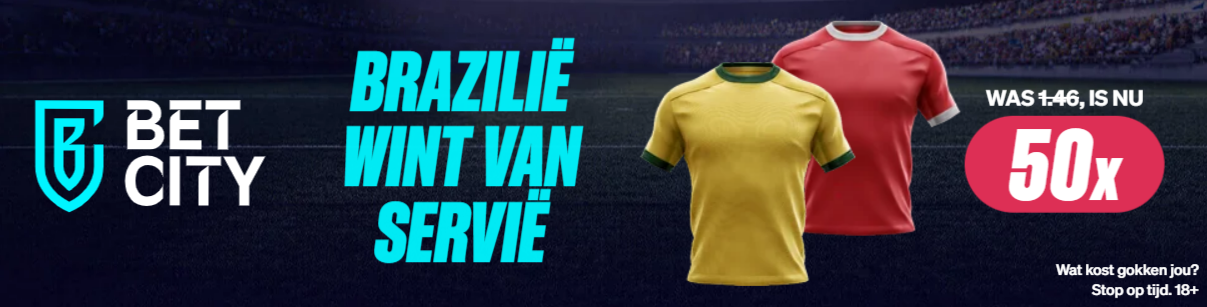 Betcity komt met een odd booster van 50x voor nieuwe spelers. Als je vandaag als nieuwe speler een account aanmaakt op Betcity en minimaal €20 stort, kun je op Portugal en Brazilië een odd booster plaatsen van 50x. Dit betekent dat je maar liefst 50 keer je inzet terug krijgt als Portugal of Brazilië wint. De maximale bet bedraagt €1, waardoor je dus €50 kan winnen met de Odds Booster. Bij winst wordt het bedrag direct op je speelsaldo geplaatst.