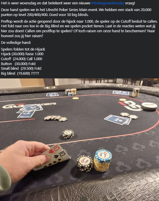 Afgelopen woensdag kwamen we met weer een nieuwe #StrategyWednesday! De wekelijkse strategie vraag waar we een (lastige) poker situatie willen simuleren, om te kijken wat jij hier zou doen. We hebben weer een hoop verschillende reacties gekregen uit de community. Had jij het goed?