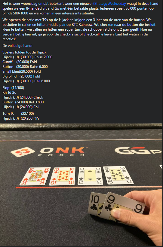 Afgelopen woensdag kwamen we met weer een nieuwe #StrategyWednesday! De wekelijkse strategievraag waar we een (lastige) poker situatie willen simuleren, om te kijken wat jij hier zou doen. We hebben weer een hoop verschillende reacties gekregen uit de community. Had jij het goed?