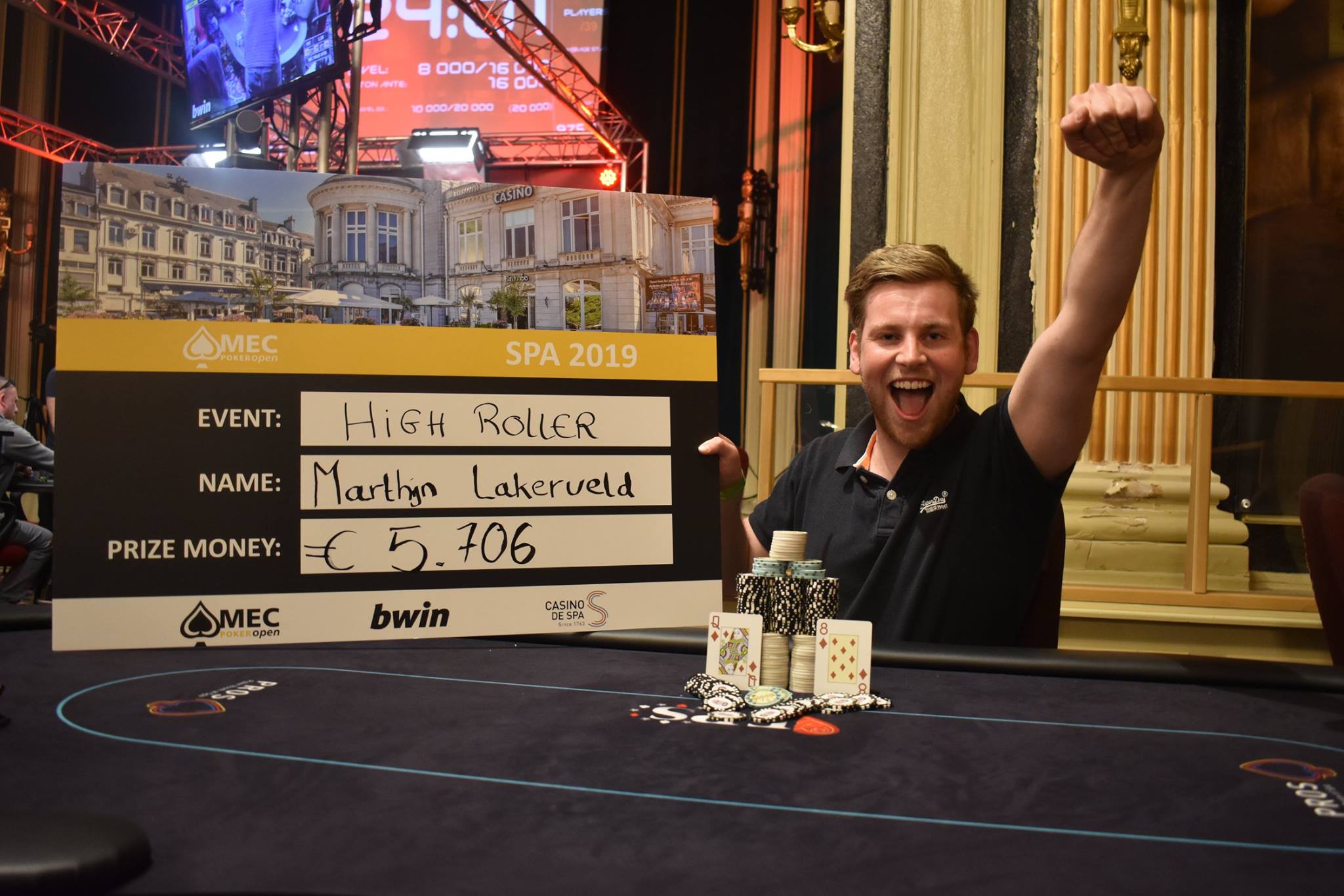 Marthijn na zijn overwinning in de MEC Poker Open Highroller in 2019.