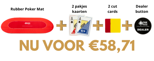 Met deze samenstelling kun je thuis gezellig met je familie of vrienden gaan kaarten. De Rubber Poker Mat zorgt ervoor dat je de professionele pokerkaarten goed op kunt tillen en de kaarten lekker over de tafel glijden. Voeg de Cut Cards en Dealerbutton hieraan toe en je bent helemaal compleet voor je eigen keukentafel pokergame!
