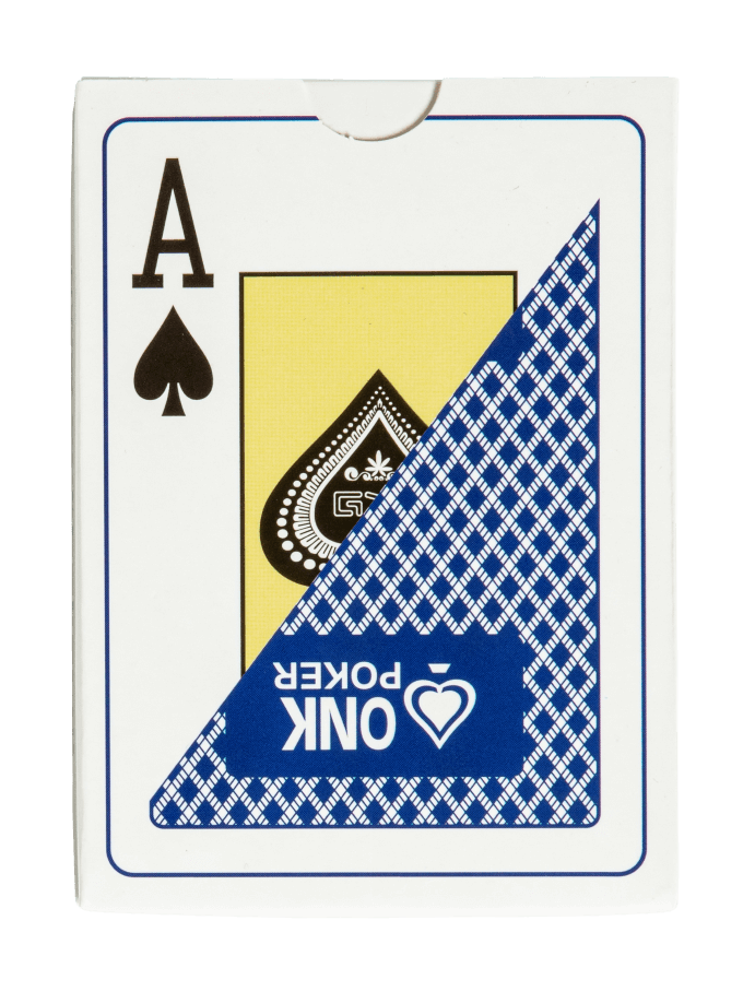 Koop nu de speelkaarten van het ONK Poker voor je eigen game. Deze 100% plastic poker kaarten kun je uren mee pokeren zonder dat ze stuk gaan. Verkrijgbaar in blauw en rood.