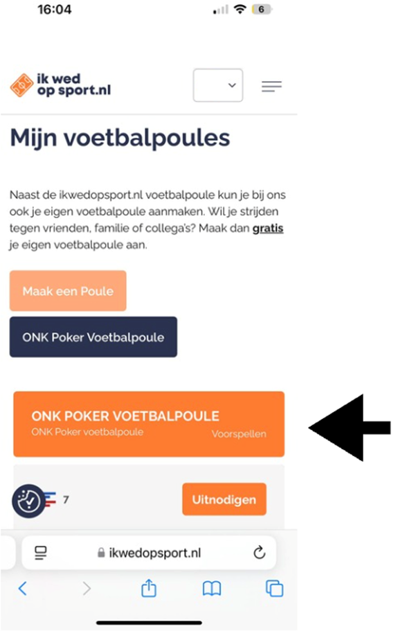 Stap 4: Druk op de button ‘ONK Poker Voetbalpoule’ en je neemt deel aan de voetbalpoule