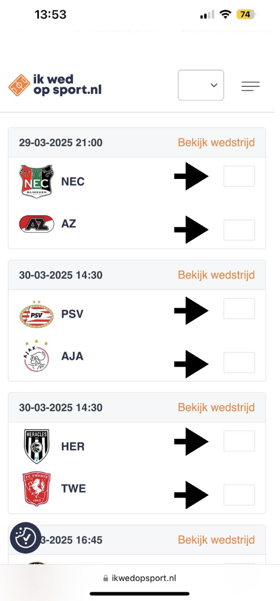 Stap 5: Druk op voorspellen en voer je voorspelling voor de speelronde in