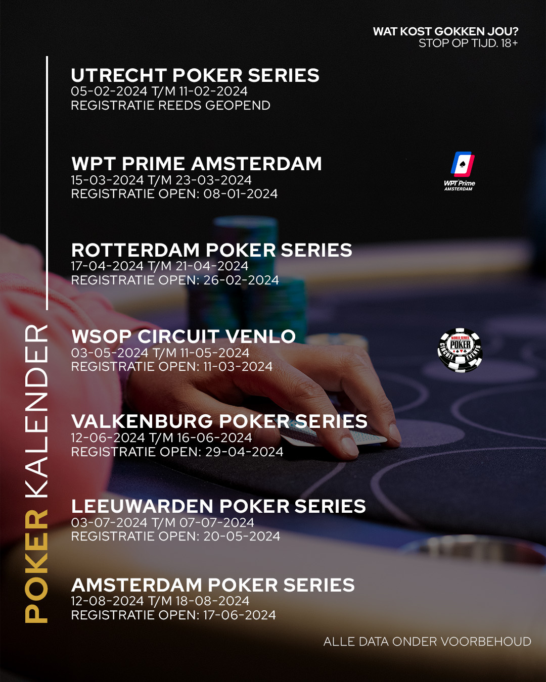 | 15 - 23 maart | WPT Prime Amsterdam | 08-01-2024 |