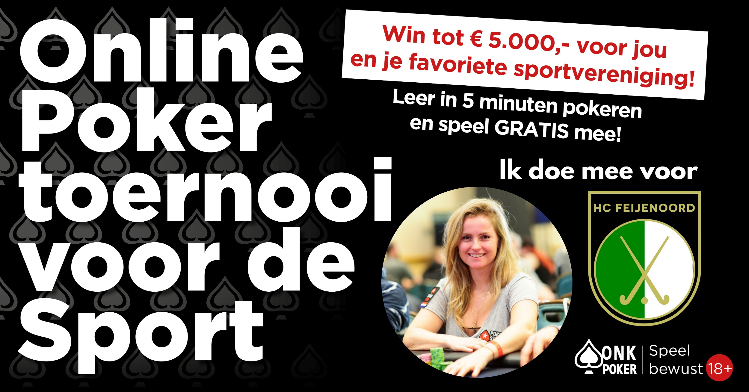 Van 22 februari t/m 28 februari kun je kans maken om een mooi geldbedrag voor jezelf en je favoriete sportvereniging te winnen bij het Online Pokertoernooi voor de Sport. Deelname is 18+ en iedereen mag meedoen, ook mensen zonder poker ervaring.