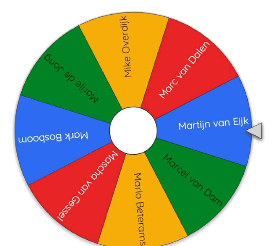 Nu werden alle namen met de voorletter M in het 'Wheel of Names' gedaan en deze keer zou de pijl belanden op de winnaar van 1 maand gratis deelname aan het ONK Poker! En de winnaar is...