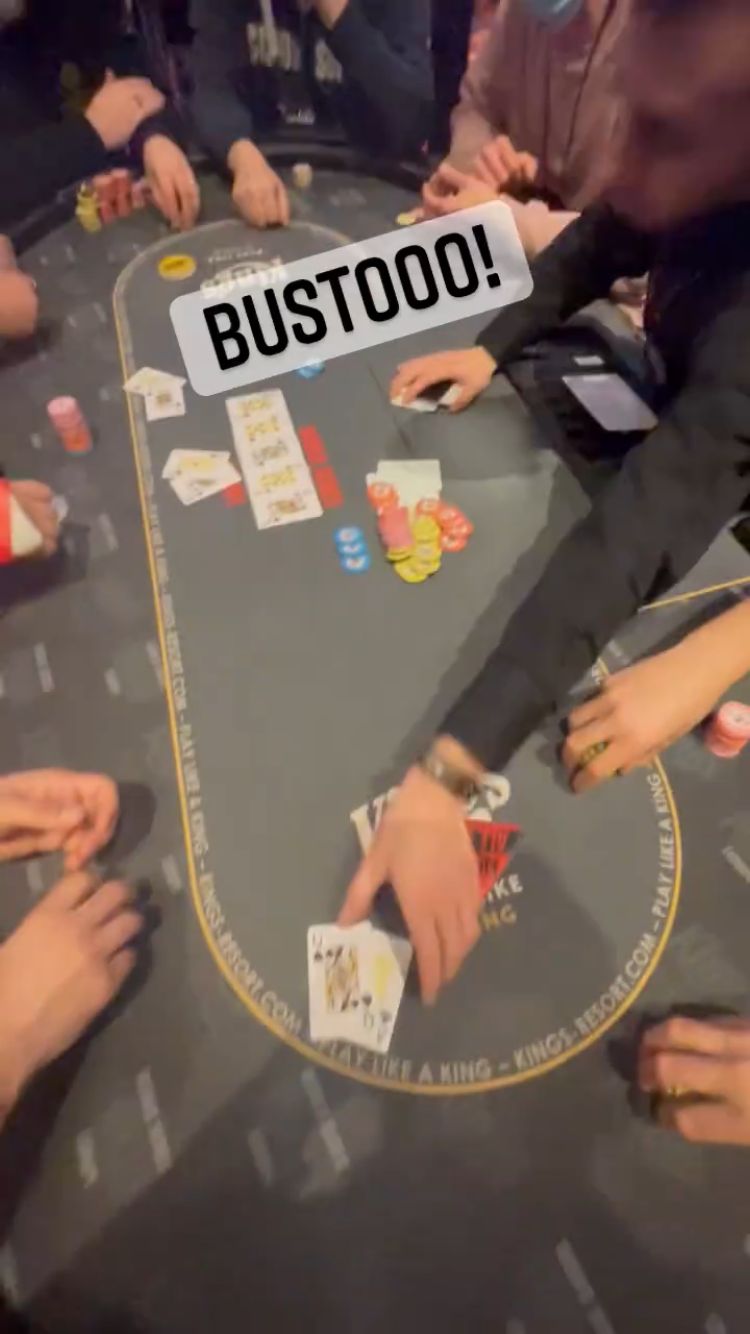 In het volgende level ging Mathijs na een utg raise met nog maar 21 big blinds all inn met AQ. Hij werdt gecalled door twee spelers die allebei AK hadden en een straat maakten. Dit was bijna het einde van het toernooi voor Mathijs. Gelukkig was de re-nuy periode nog niet gesloten en kon hij zich nog opnieuw inkopen en weer met 100.000 chips beginnen.