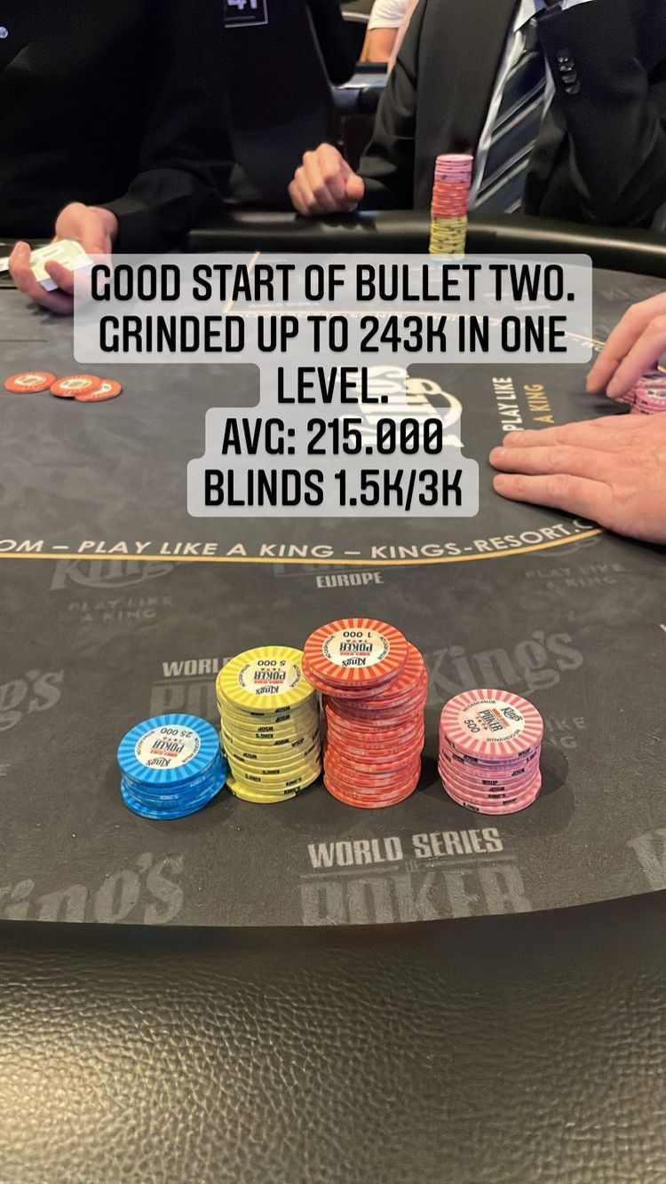 In het volgende level wist hij zijn stack weer op te bouwen naar 243.000. Tijdens lvl 10 wist hij nogmaals een pot te winnen door all inn te schuiven op de turn tegen Georgios Tsouloftas die besloot te folden. Hiermee kwam zijn stack op 270.000.