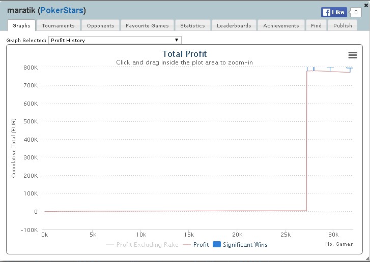 Een ander mooi voorbeeld is de pokergrafiek van de winnaar van het WCOOP Main Event in 2012. De Russische pokerspeler ''Matarik'' speelde jarenlang lowstakes sit & go's, wat hem slechts een kleine winst opleverde. Daar kwam in 2012 verandering in toen hij via een sateliet in het WCOOP Main ($5,200) terecht kwam en deze uiteindelijk wist te winnen. Hij won uiteindelijk meer dan $1 miljoen en is mede bekend geworden in de online pokerwereld door zijn uitspraak ''I wont million'' in de chat tijdens het maken van een deal.