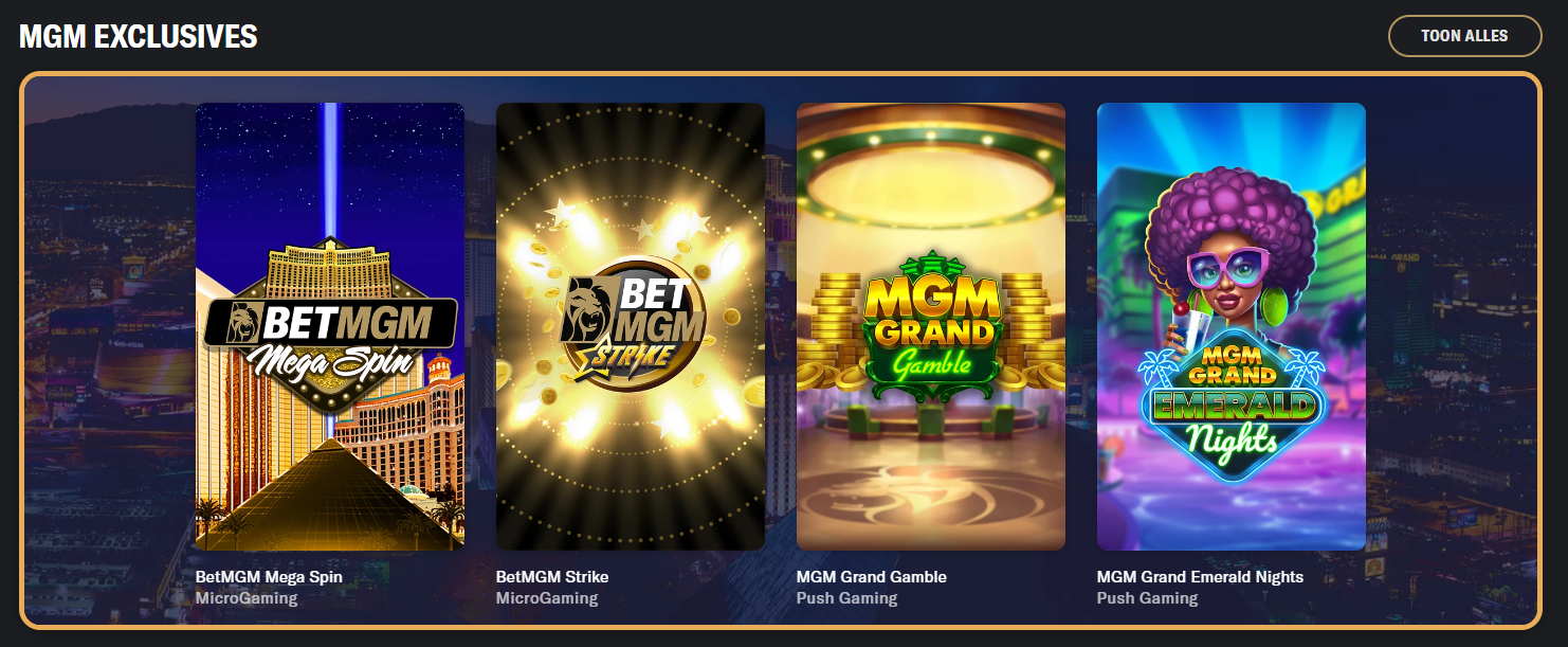 Het spelaanbod van BetMGM deelt zich op in Sport, Casino en Live Casino. De sportsbetting sectie is zeer uitgebreid met veel verschillende keuzes om in te zetten en leuke odd-boosters. Bij casino en live casino zien we een uitgebreid aanbod aan spellen dat overeenkomt met andere aanbieders. Daarnaast zien we bij casino een aantal leuke exclusieve BetMGM gokkasten.