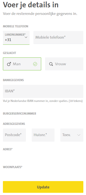 Wanneer dit allemaal gelukt is kom je bij stap 2 (2/3) in het registratieproces. Hier moet je jouw persoonlijke gegevens invullen.