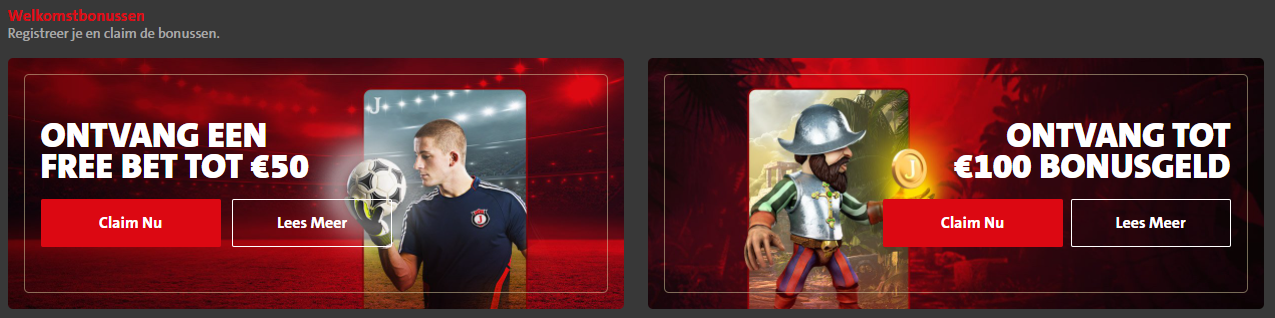 - 100% welkomstbonus voor casino en gratis weddenschap voor sport