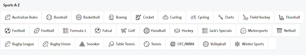 Qua sportaanbod heeft Jack's een ruim aanbod, net als de meeste andere online aanbieders. Jack's biedt 19 verschillende sporten aan, waarbij voetbal zoals te verwachten de meest populaire variant is. Er zijn tal van verschillende mogelijkheden om in te zetten op een wedstrijd en bij de populaire wedstrijden zijn vaak bonusaanbiedingen. Het is ook mogelijk om live weddenschappen te plaatsen. Dit staat duidelijk aangegeven op de Sports homepagina.