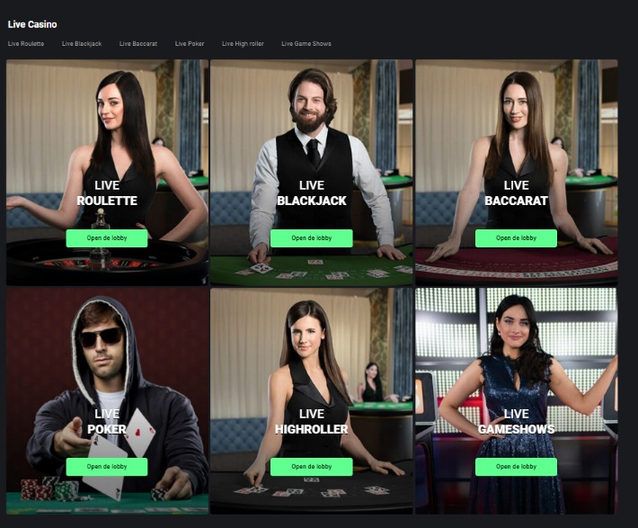 - Live Poker - Speelsoorten als Carribean Stud Poker, Casino Holdem en Ultimate Texas Holdem aanwezig - Minimum inzet van €0.50