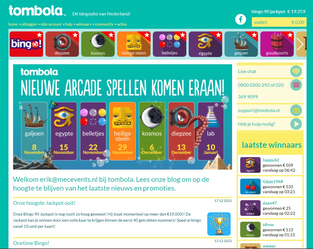 Vanaf 30 september 11:00 is het niet meer mogelijk om Bingo en arcadespellen te spelen op Tombola. Inloggen is nog wel mogelijk tot 27 oktober, zodat spelers hun tegoed uit kunnen laten betalen.