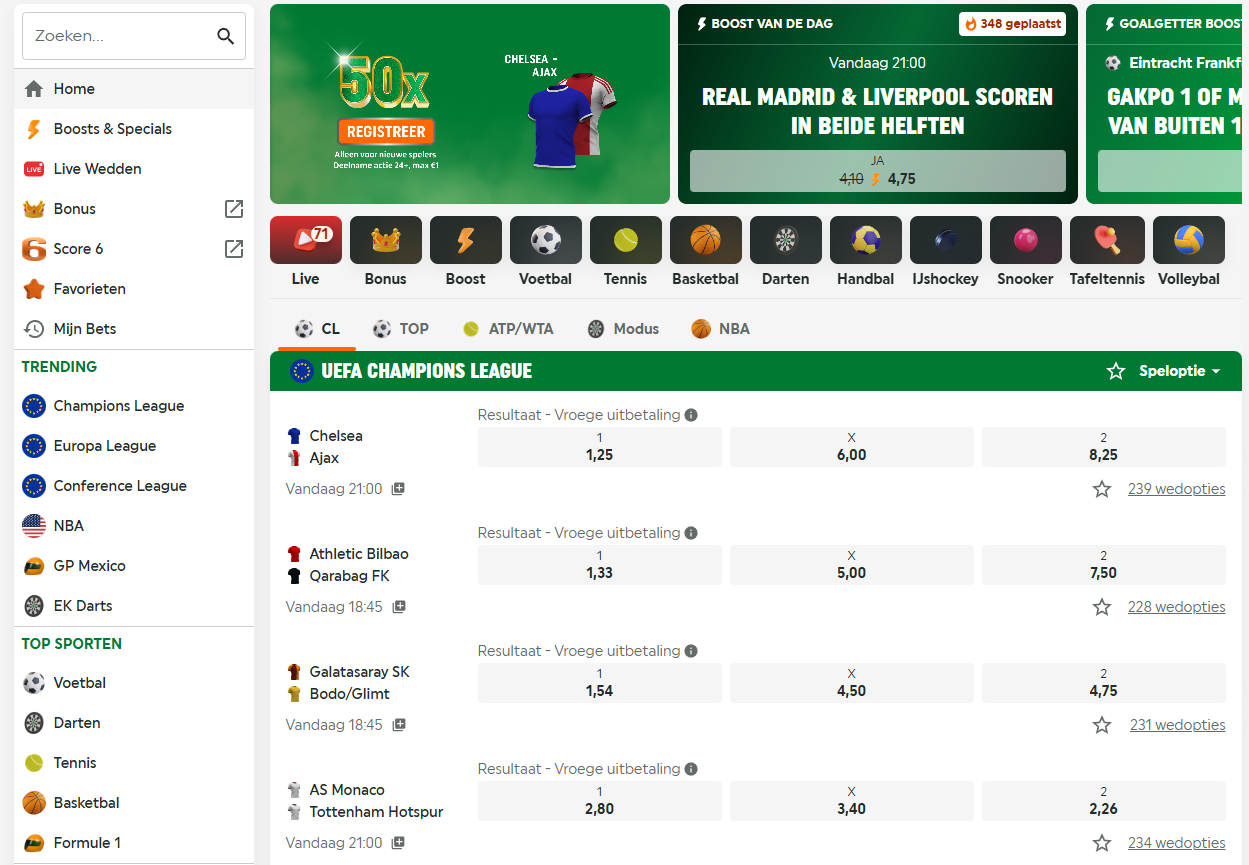 - Ruim aanbod van sportweddenschappen