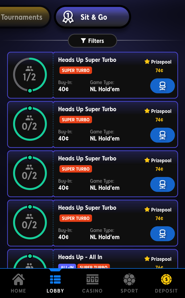 - Heads-up tournaments