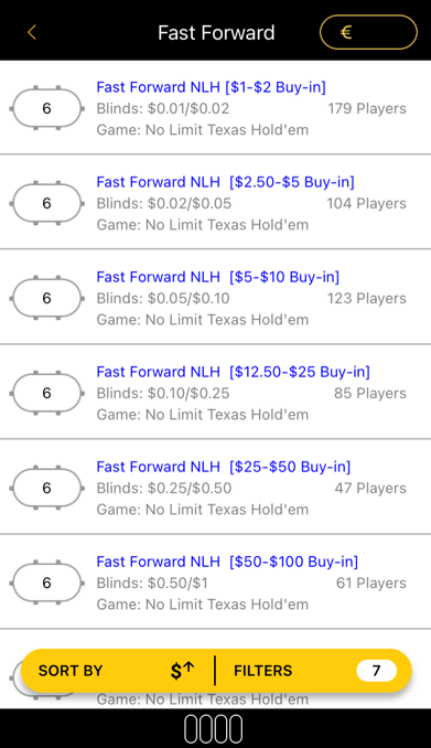 Verder kun je met blinds spelen tot een max van $50/$100. Naast het kiezen van de blinds ligt je keuze ook vrij in het kiezen met hoeveel mensen je aan een tafel wilt. Je kunt hier kiezen tussen een 8-mans tafel of een 6-mans tafel. Als laatste krijg je de keuze om te kiezen welke categorie speloptie je gaat spelen. Je kunt kiezen tussen; Pot Limit Omaha, Short Deck No Limit Hold’em, Fixed Limit Hold’em en natuurlijk de bekendste spelvorm No Limit Texas Hold’em.