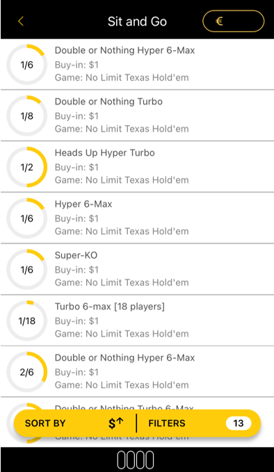 Je ziet dat er dus enorm veel verschillende varianten zijn van sit & go. Double or Nothing heeft de betekenis dat je je geld verdubbelt of je inzet kwijt bent. Deze variant van sit & go kun je spelen met 6 of 8 personen en je kunt kiezen of je wilt spelen met Hyper en Turbo of zonder. De Hyper en Turbo sit & go’s worden steeds populairder omdat de blinds meer zijn en ingesteld in totaal aantal handen, in plaats van tijd (5 minuten). Het gevolg van de Hyper en Turbo sit & go’s is dat je als speler al eerder genoodzaakt bent om te folden, of all-in te gaan.