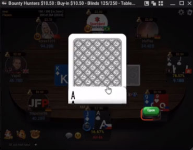 De card squeeze functionaliteit is een leuk element die GGPoker aanbiedt. Op deze manier kun je je hole cards spieken of een river extra spannend maken doordat deze dicht in je scherm komt en je de river kunt spieken.