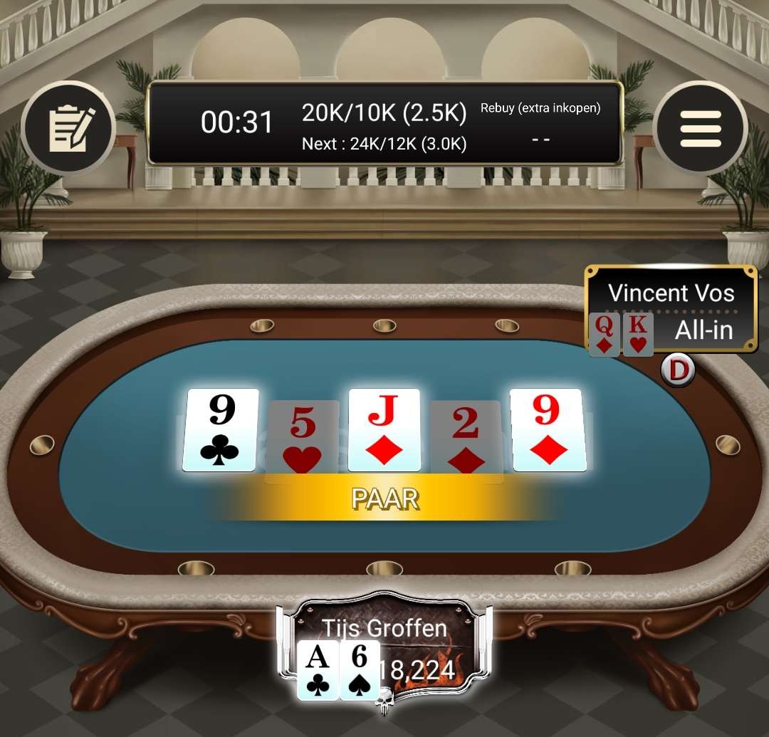 Pokerrrr 2 kun je spelen op je telefoon of tablet. Er is een app voor de Google Playstore en voor de Apple App Store. Je vindt de app door te zoeken op Pokerrrr 2 (poker met 4 keer een r).