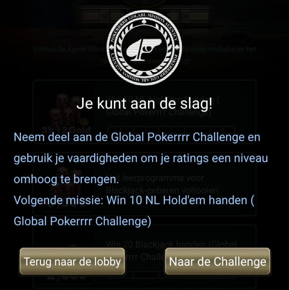 Hier leer je hoe je tijdens het spelen kunt folden, callen, checken en raisen! Na het voltooien van deze missie kun je klikken op 'Terug naar de lobby'.