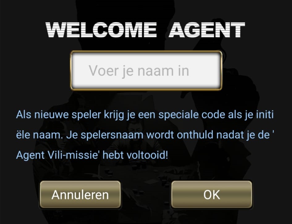 Als je als gast wilt spelen dien je je naam in te voeren. Let op: Vul hier je echte voor- en achternaam in!  Je kunt maximaal 20 tekens invoeren. Indien je naam langer is dan 20 tekens, mag je je naam afkorten. Bijvoorbeeld: Willem van de Klettersteeg, wordt dan W vd Klettersteeg. De melding omtrent het onthullen van je spelersnaam na het voltooien van een missie kun je negeren.