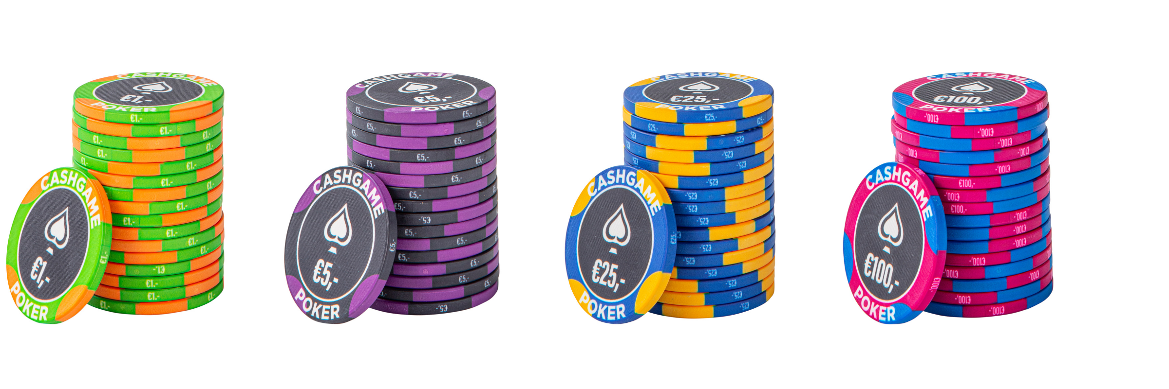 Speel je veelal cashgames met je vrienden, ga dan voor een cashgame pokerset. Deze zijn speciaal ontworpen voor cashgames. Het voordeel van een cashgame set, is dat de waarden van de chips vaak wat lager zijn dan bij toernooi chips. Hierdoor sluiten ze uitstekend aan bij het limiet wat jij met de cashgame speelt. De MEC Shop biedt cashgame sets aan voor alle limieten. Zo zijn er sets beschikbaar met chips beginnend bij een waarde van €0,25 cent tot max €25,- voor als je wat lagere limieten speelt. Ook zijn er sets beschikbaar met chips beginnend bij een waarde van €1,- tot wel €500,- of zelfs €1,000,-.