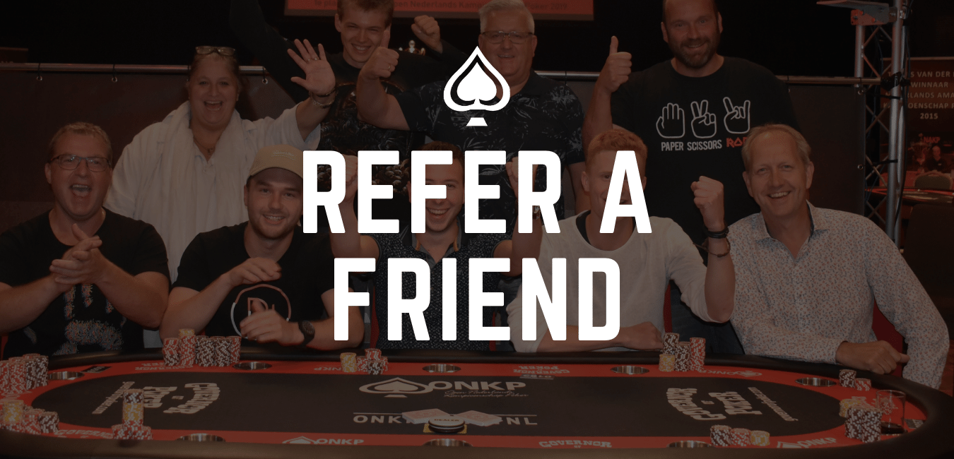 Dit is een welkomstcadeau voor nieuwe spelers. Het geeft iemand de kans om zelf te ervaren hoe een ONK Poker-toernooi werkt. Het is laagdrempelig en er wordt geholpen waar dat nodig is: iedere nieuwe speler krijgt dit voordeel automatisch bij het aanmaken van een account. Het draait hier vooral om een eerste kennismaking met de community en het pokeren zelf.Neem je vrienden mee